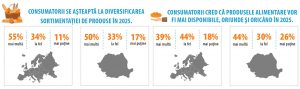 Pe glob consumatorii au aşteptări ridicate în ceea ce priveşte evoluţia ofertei de produse alimentare. În următorii 10 ani oamenii se aşteaptă ca varietatea produselor să crească şi să fie cât mai disponibilă şi uşor de accesat, adaptându-se nevoii de mobilitate şi flexibilitate.