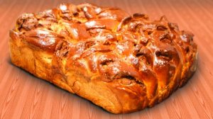 Ingrediente: 1 kg făină, 50 g drojdie, 3 gălbenușuri, 1 ou întreg (pentru uns la suprafaţă), 3,5 linguri zahăr, 5 g sare, 800 ml lapte, 10 linguri ulei, umplutură: 250 g unt sau margarină, 250 g zahăr, 30 g scorțișoară sau 120 g cacao pudră.