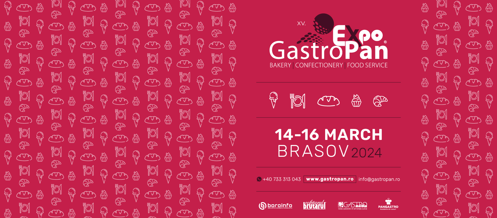 GastroPan – 14-16 martie 2024 – Brașov – evenimentul obligatoriu pentru profesioniștii și specialiștii din industria panificației, patiseriei, cofetăriei, gelateriei, ciocolateriei, morărit, HoReCa pentru a descoperi ultimele noutăți, inovații și tendințe: utilaje, echipamente, materii prime și ingrediente, mobilier, ambalaje, consumabile și servicii.