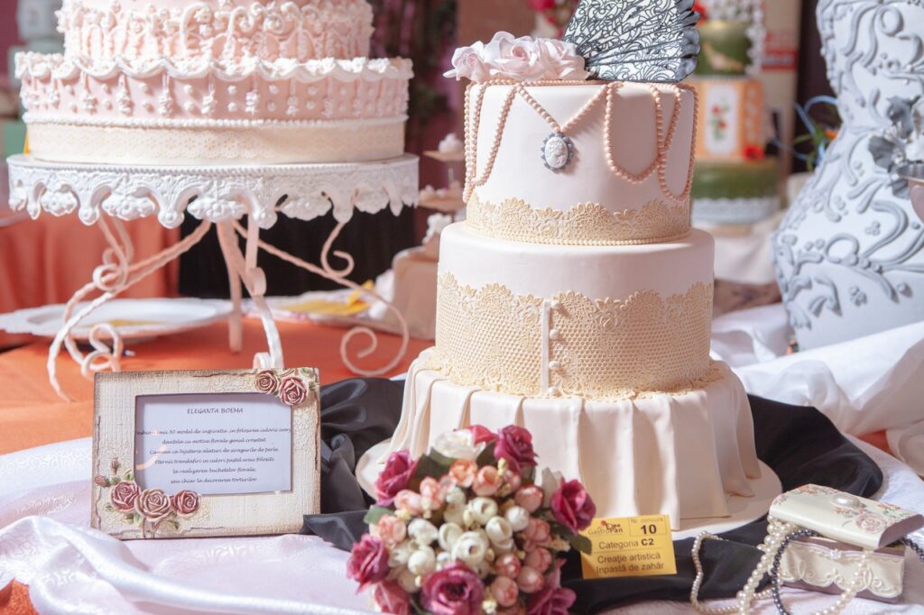 • Creație artistică din pastă de zahăr – tematică: Torturi de nuntă – extravaganță