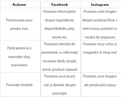 Publicul de pe Instagram este, în general, mai tânăr decât cel de pe Facebook, fapt care arată că doar un procent mai mic al clienților au cont pe Instagram. Clienții care caută brandul au așteptările ca acel conținut să fie cât mai instagramabil care să îi cucerească și să îi convingă să treacă pe la brutărie sau cofetărie. Doresc să vadă creativitate, eleganță, inspirație, și nu neapărat informație. De aceea, e important ca feed-ul să fie coerent, fotografiile să fie luminoase și curate, iar descrierile să aibă personalitate.