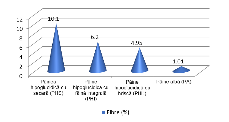 În ceea ce privește aportul de fibre, acesta este maxim în cazul PHS (10,1%) urmat de PHI (6,2%), PHH (4,95%) si pâinea albă (1,01%). Se observă că produsul PHH prezintă cea mai scăzută valoare energetică (161,67 kcal/100 g produs) în comparație cu celelalte produse și provine din aportul glucidic (26,92 g/100 g produs), lipidic (2,88 g/100 g produs) respectiv proteic (6,91 g /100 g produs) scăzut.