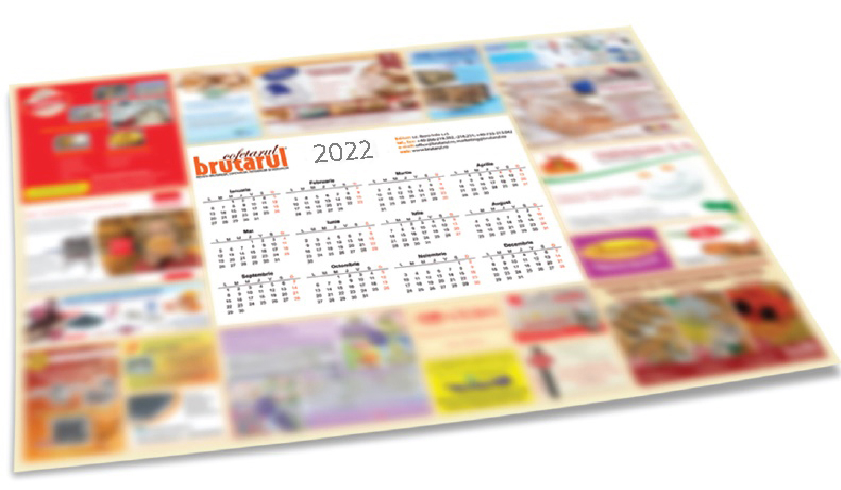 Reclama ta din Calendarul Brutarul-Cofetarul va ajunge în birourile și unitățile de producție ale brutăriilor, patiseriilor, cofetăriilor, gelateriilor și morilor din întreaga țară, unde va rămâne pe tot parcursul anului 2022.