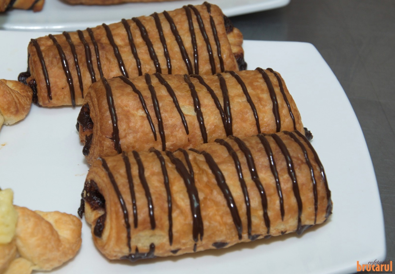 - Se aplică o bandă de umplutură pe ambele margini ale bucăților de aluat din poș cu dui după care se pliază.